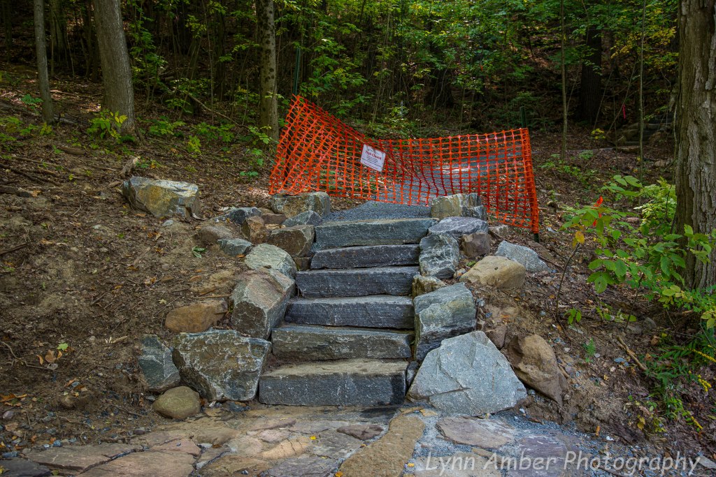 The day we hiked to the summit it was unbelievably hazy. I’m not sure if this was due to lingering smoke haze from the fires out west. It did mean that photography was a challenge. It was almost impossible to get a good clear photo that outlined the Adirondacks and showcased the valley below. The Summit Trail was under construction is sections and there were a couple of detours along the way.