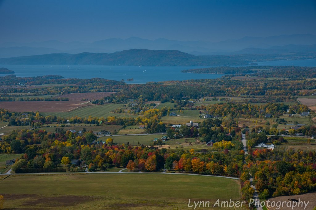 This was my best attempt at a landscape photo from the summit! It required considerable editing in Lightroom to pull in the Adirondack skyline and it’s still very hazy! It does however capture the essence of the Champlain Valley. 🙂