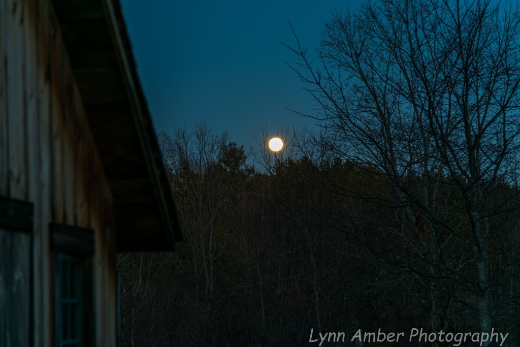 The November full moon is often referred to as the Beaver moon as it was observed that beavers were most active during this time of the year preparing their lodges for the long winter ahead. The moon has appeared full for several nights now. We took a walk up the road last evening as the moon was rising and it was magical the way it was shining through the forest – casting long tree trunk shadows across the landscape.