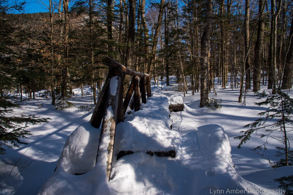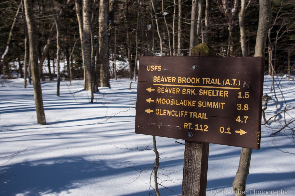 We headed east on Vt Route 302 and crossed the Connecticut River into New Hampshire. Taking NH-112 east of Woodsville towards Lincoln, we left all traffic behind! The road winds through the beautiful White Mountain National Forest and parallel’s the Ammonoosuc River valley for a spell before starting to climb in elevation. When we reached the Beaver Brook Trailhead parking lot, we decided to park the truck and snowshoe part of the Appalachian Trail. The trail crosses the road here after its descent from the summit of Mt. Moosilauke. Mt. Moosilauke is one of my favorite mountains to hike in New Hampshire. I’ve always accessed the summit from the other side of the mountain via Ravine Road off of NH-118. This is the location of the Moosilauke Ravine Lodge operated by the Dartmouth College Outing Club.