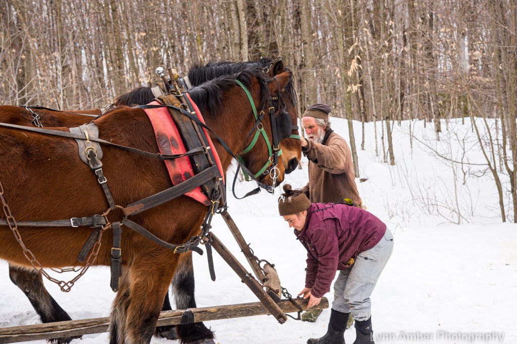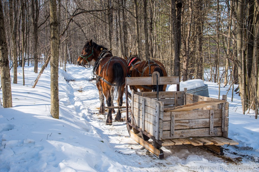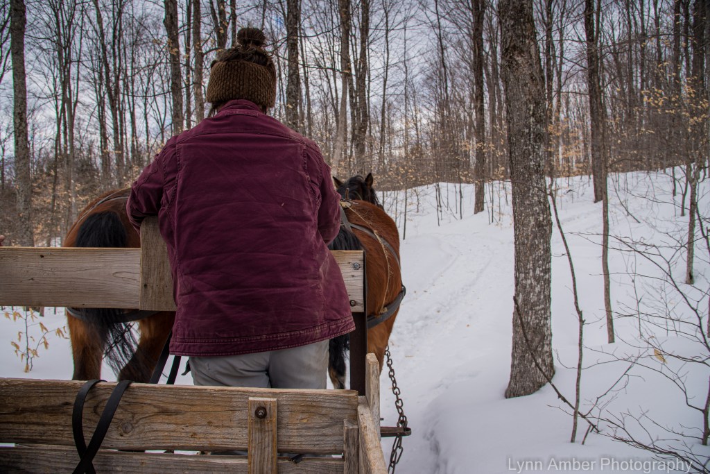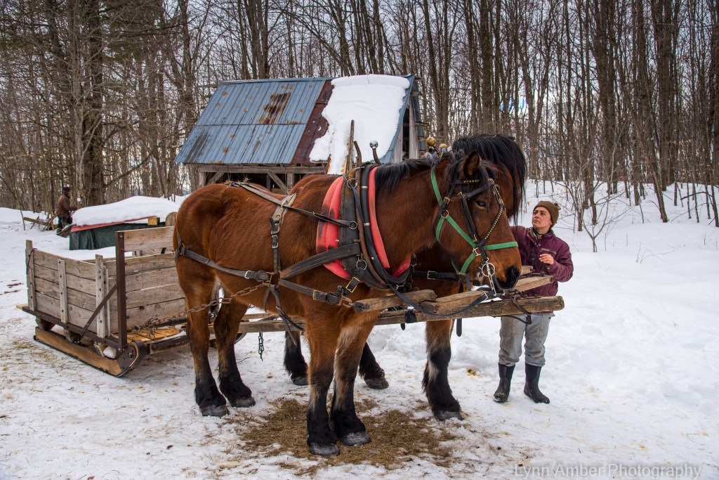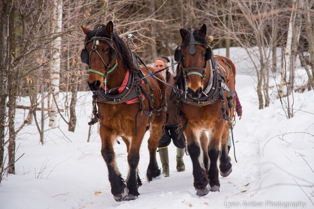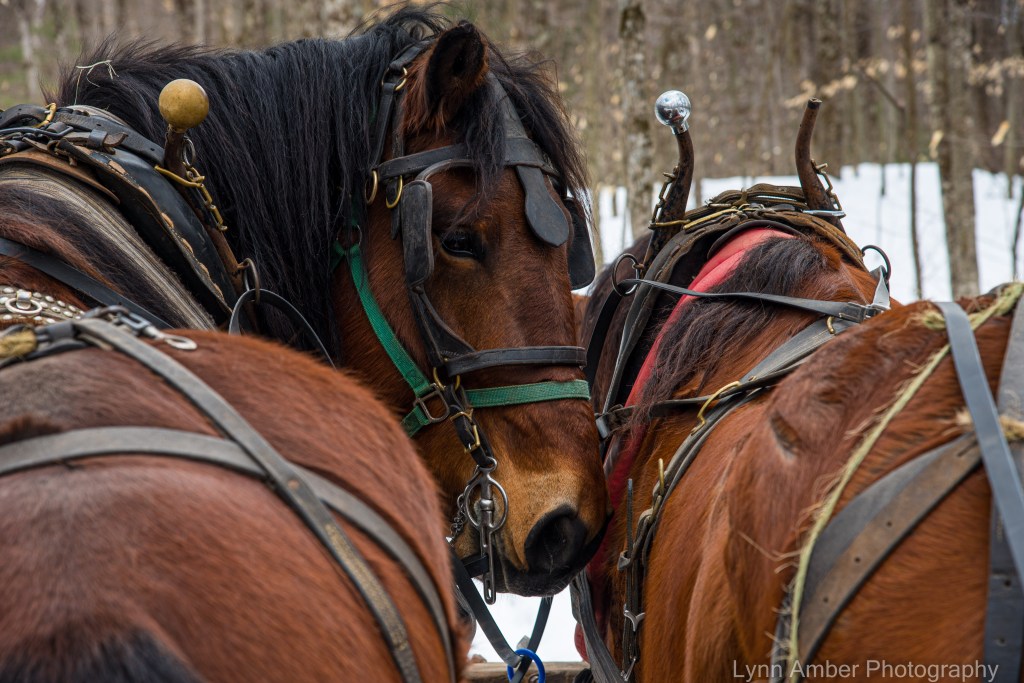 And, once in position behind the sleigh – they get all hitched up and are ready to take a spin through the sugarbush. I’m always amazed how incredibly strong these horses are and, even with the soft and slippery snow, they manage the ups and downs and twists and turns of the trail with relative ease.