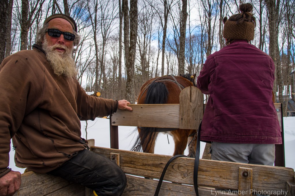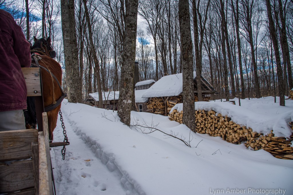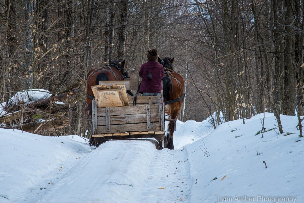 Bill’s getting prepped for the annual maple sugar season when he taps between 800 and 1000 trees – selling his syrup at local coops throughout the year. He sugars the old-fashioned way using a team of horses to gather the sap that is collected from buckets hanging from taps drilled into trees. He has quite possibly the prettiest sugarbush I have ever seen. He’s been lovingly caring for these woods for over 35 years and it shows. I love wandering through his forested land – especially when being pulled by the horses in the sleigh!