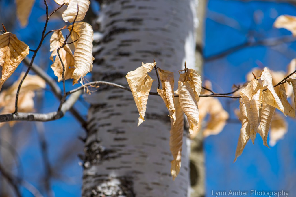 During my long walk yesterday, the birch trees stood out against the deep blue sky and intermingled among them were beech tree stems – making it appear that they emanated from the birch trees. I just loved the contrast.