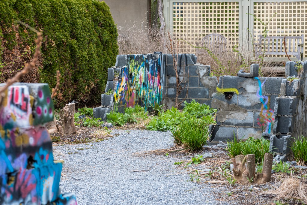 Finally, one last photo – from an area in the Idea Garden. There was no explanation for this section of the garden or the “artistry” that is represented here. A plaque stated that it was developed in collaboration with a local artist and teacher. I imagine that it represents an “urban” space gone wild – with a representation of the types of plants that will self-sow in such an environment if left unchecked. Thoughts anyone??