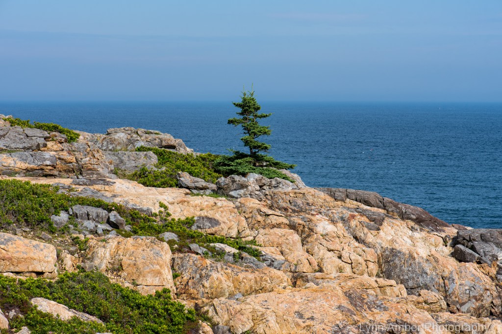 I embarked on a short hike after work today on the Great Head Trail in Acadia National Park. It’s a short, but rocky trail that weaves its way along the coastal cliffs of Great Head and through the forest and pitch pine ecosystems. I was struck by this lone Balsam Fir tree braving the elements atop one of the cliffs.