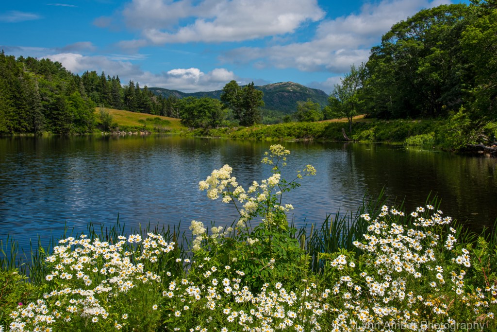 As I was walking along the pond’s edge, I could hear the loons but they were being elusive and hiding at the far end of the waterway. It was enough just to know they were there…..