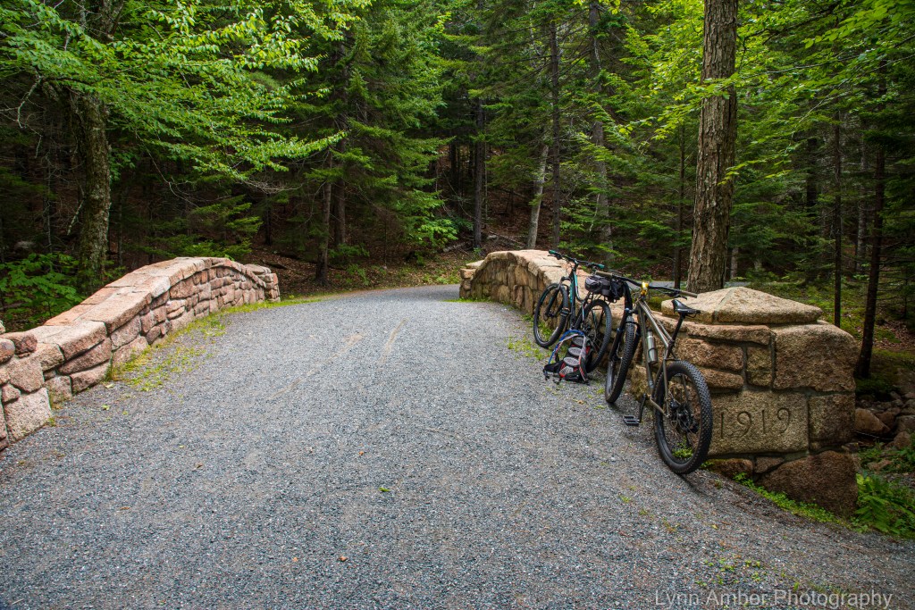 Today, Jim and I biked two different loops on the carriage road system here in Acadia National Park. Our first ride was around the Amphitheater Loop starting at the Brown Mountain Gate parking area. It’s about a 5 mile loop starting and ending at Brown Mountain. We stopped to admire the small Little Harbor Brook Bridge that spans the creek with the same name.
