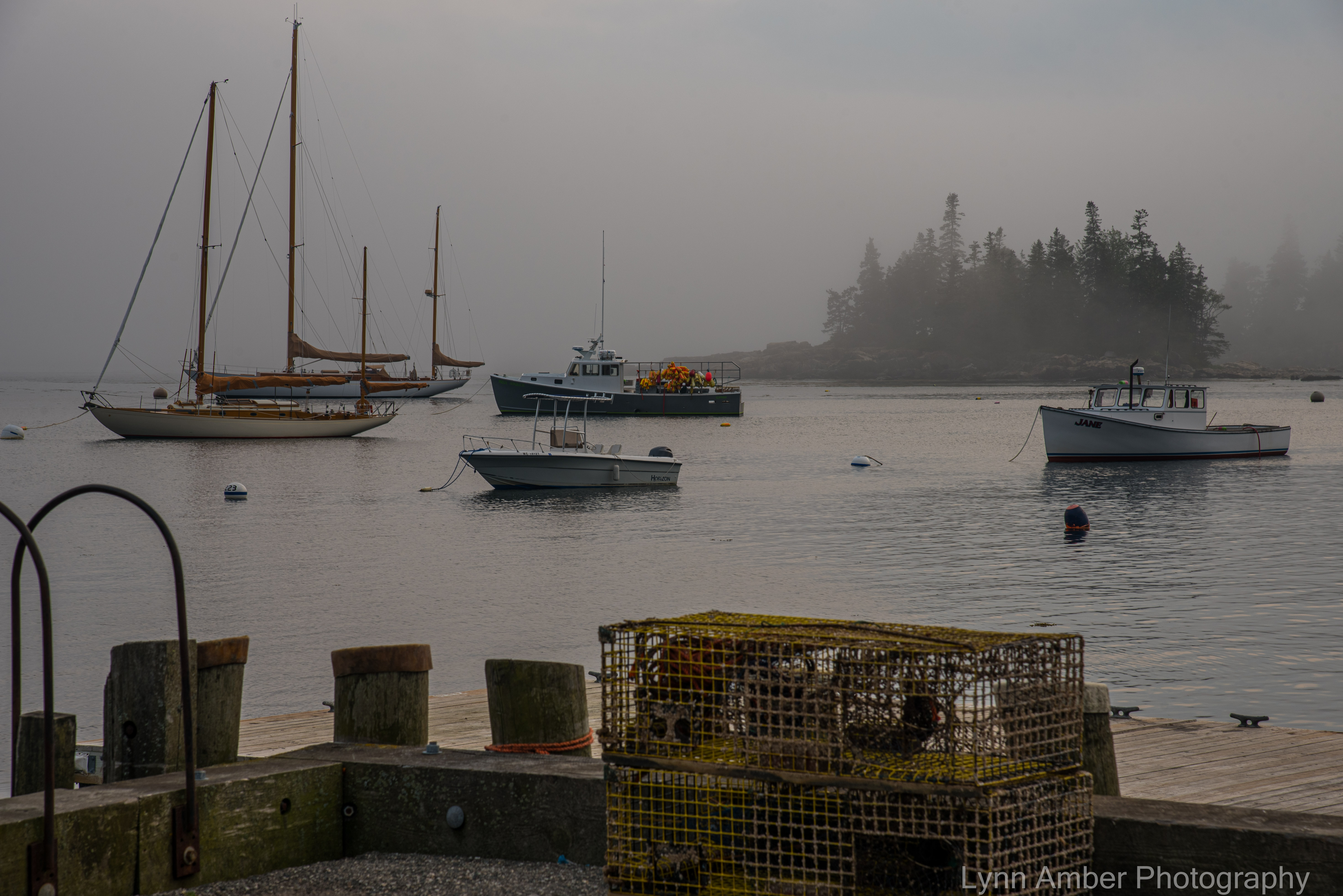 My husband surprised me on Tuesday by leaving a message on my phone saying that he was on his way for a visit! He’ll be staying for a bit and his first full day here we took a walk on part of the carriage road system, had dinner in Northeast Harbor and explored the boats moored in both Northeast Harbor and Seal Harbor. The fog partially cleared along the coast enough for an actual colorful sunset last night!