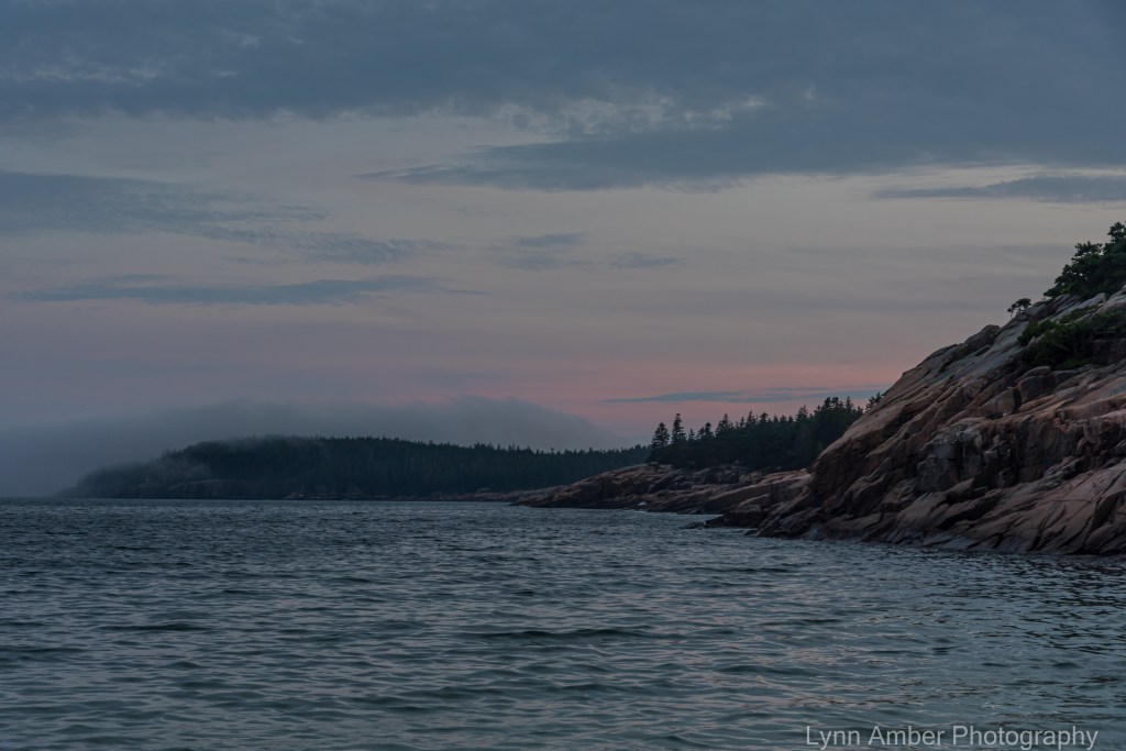 The fog was rolling in across the ocean and Otter Point, in the distance on the right, was engulfed with a blanket of mist. A zoomed-in look at the Otter Point mist below: