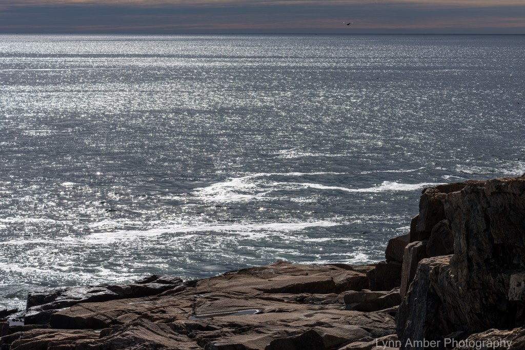 I was trying to capture the subtle pastel colors of the sky along with the shimmering sea and, by accident, also captured a lone seagull cruising along the coast. The whole scene evokes a sense of peace and calm – something we can all relate to in these tumultuous times.