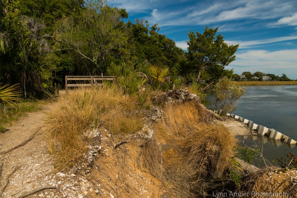 The Spanish Mount Trail ends at an open water section of the salt marsh along a bank that holds a important Native American archeological site . At this location is an ancient shell midden (aka trash heap) created by the Edisto native Americans somewhere around 2,000 BC.