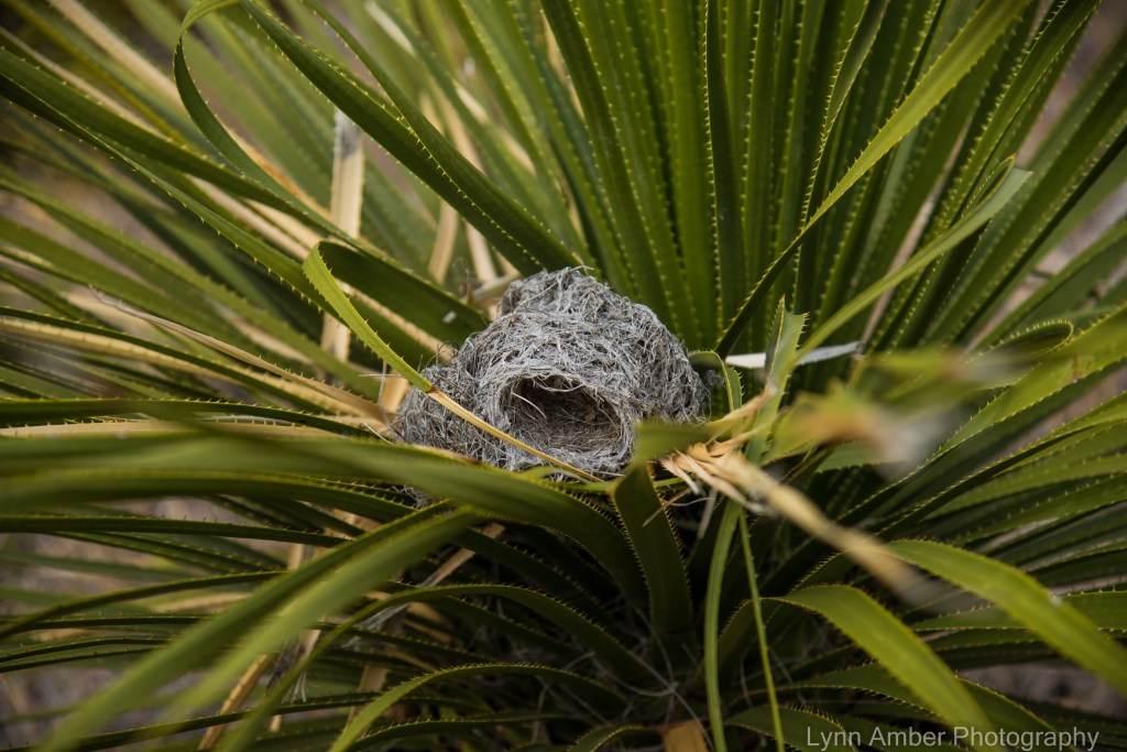 Found this nest in one of the sotol plants. I think perhaps it is a cactus wren nest given how it seems to match the description of their nest type and shape.