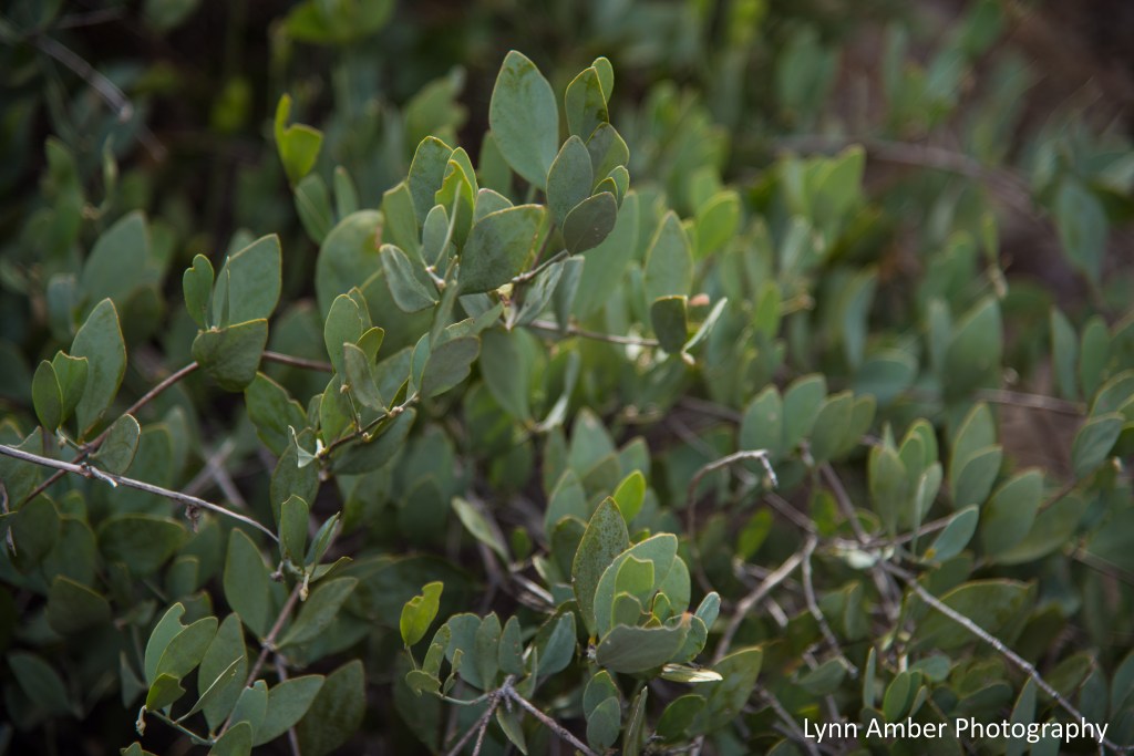It was fascinating to learn of the jojoba (Simmondsia chinensis) plant’s unique adaptation that enables it to thrive in this desert environment. Jojoba leaves face their edges toward the mid-day sun allowing the plant to conserve water by decreasing evaporation. You can see this in the image below. Also of interest, jojoba oil is a commercial skin care product manufactured from the waxy oil in the jojoba seed and is prized for its antioxidant properties!