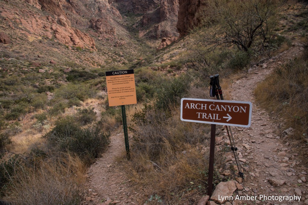 Just beyond this sign marks the end of the maintained trail in Arch Canyon. Every trail in the park also has cautionary signs regarding the possibility of encountering illegal immigrants. While that may seem intimidating, we never felt unsafe in the park and I imagine any encounter would be extremely rare.