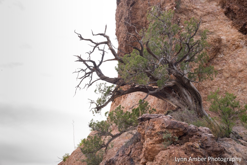 According to historical documentation, the Hokoham and Tohono O’odham people chose canyons like Estes Canyon for their winter homes. Water was more abundant in the higher elevations as well as mammals for hunting. Rounding a corner in the trail, I was fascinated with this old juniper growing out of the side of the rock face. What character it has!