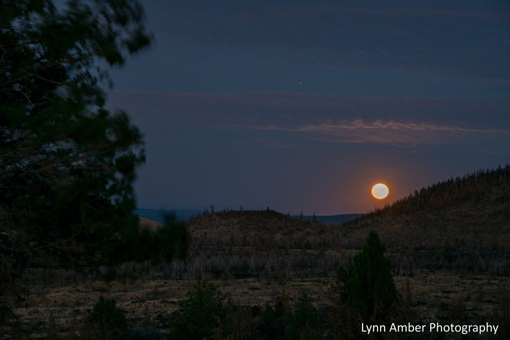 The view from our campsite in Lava Beds National Monument shows how stark the landscape is here. Last night, the full moon was rising just to the right of the above photo behind one of the cinder cones to the south of us. It was a blustery evening. The tree branches in the foreground show that with their blurry twigs blowing in the wind!