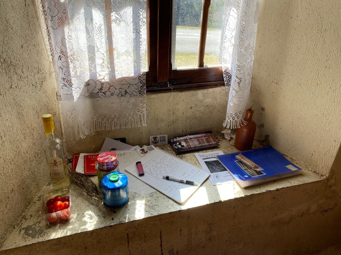 Once my new acquaintance Thomas and I had connected with our host, Evelyn, we dropped our bags in the common room at the Gîte du Pont . Evelyn invited us to make ourselves at home and prepare a cup of tea if we desired – so I took her up on that offer and also made a cup for Thomas. We chatted together over tea and I found out that Thomas is a retired paramedic and fire-fighter from Florida. He started the walk in Le Puy and has plans to walk all the way to Santiago de Compostela. Being from Florida, he said he is finding it challenging to walk this section of the Camino due to the changes in elevation. Something he is not used to! We will see him many times over the next couple of weeks.