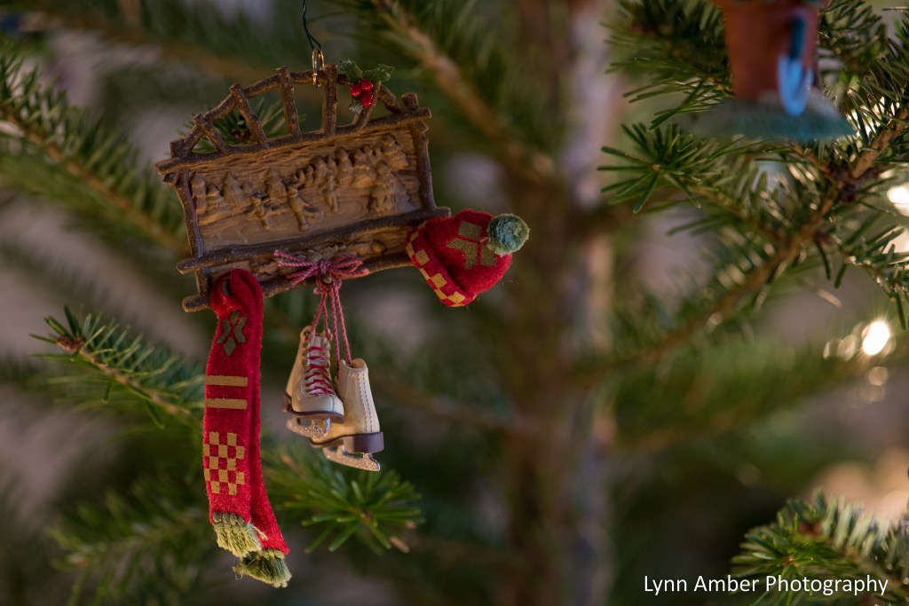 Although the skates on the ornament are figure skates, they are representative of the good times we had as a family playing pick-up ice hockey games on our pond and at the town rink. I remember a particular moment one night – frozen in time – donning my skates on the side of the town rink with temperatures hovering around zero degrees Fahrenheit – my breath freezing as it collided with the air – the rink lighting casting peculiar shadows across the ice – fingers and toes numb – knowing that as soon as I started skating a warmth would settle over me and all would be right with the world.