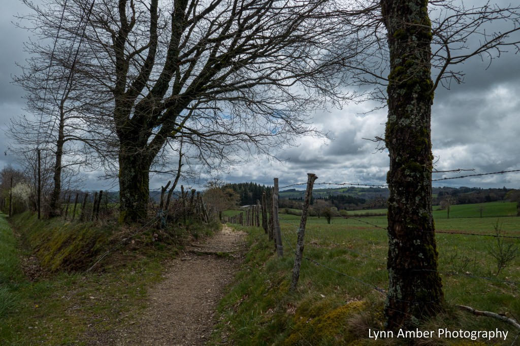 I left Sènergues behind and started the last leg of the journey to my destination of Conques. With still over 9 kilometers to go and the weather threatening, I stepped up the pace a bit. The walk between Sènergues and Conques was through mostly open countryside and the views were spectacular, even given the cloud cover.