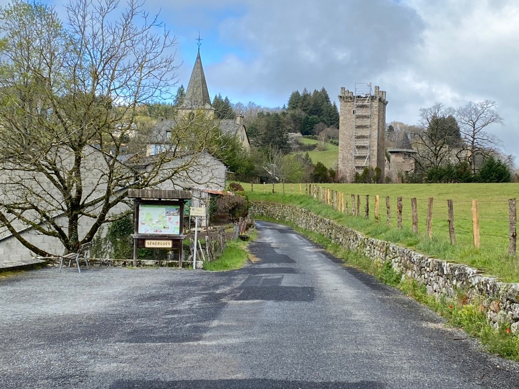 After passing the cemetery, the road leads in the town of Sènergues. The square tower structure is part of the Château de Sènergues. According to the castle website, the building was contructed in 1385 by Aymeric de Senrgues during the Hundred Years War. It’s purpose was to serve as a refuge for the town inhabitants. It is said that the castle is still owned by descendants of the original Senrgues.