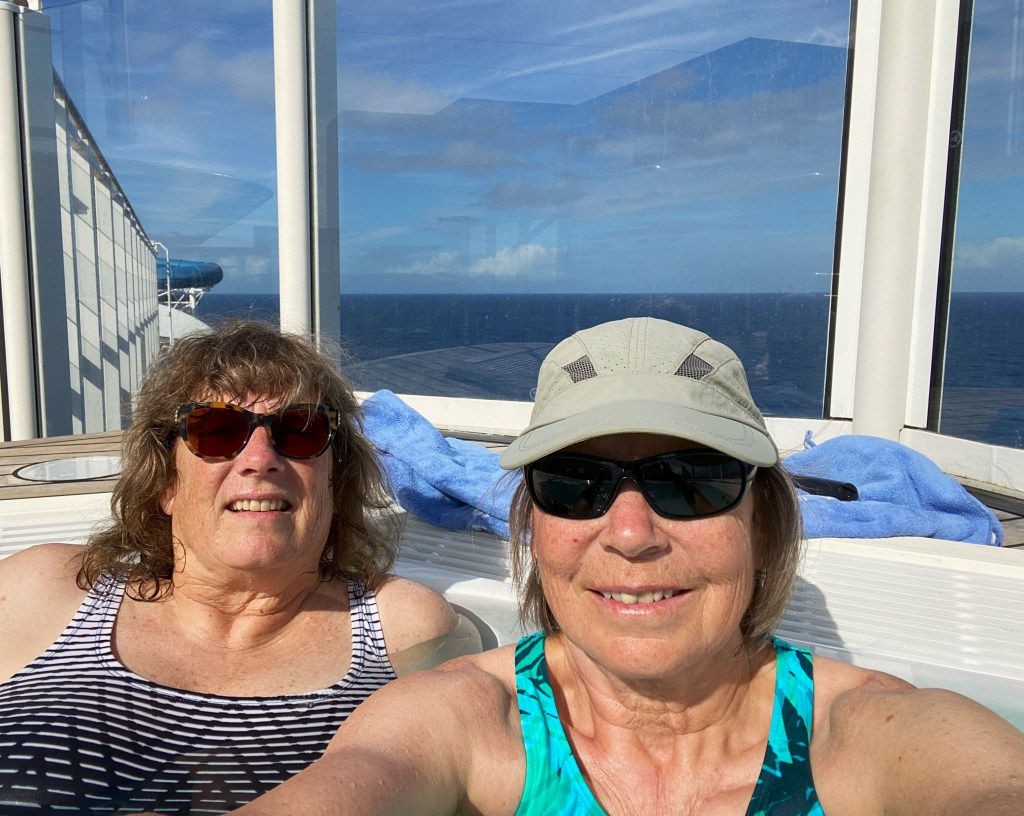 The line dancing class was fun even though the dance floor was kind of crowded and the timing was such that we headed back to The Local afterwards for lunch. After lunch, my sister and I decided to get into our bathing suits and see if we could find a spot in one of the many hot tubs located on the upper decks. We finally found a less crowded hot tub on Deck 17 – the Sun Deck. We only had one or two other folks sharing the space with us at a time and had some nice conversations with a Canadian couple and a retired teacher from Brooklyn.