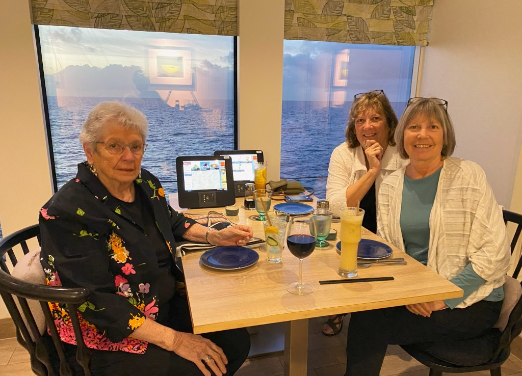 As to be expected on a large cruise ship with thousands of people, we all experienced days that we weren’t feeling up to par. In all fairness to the cruise line, they did an excellent job of providing hand sanitizing stations throughout the ship. But, those pesky germs are everywhere! For my sister, it was our first day at sea. She was still recovering from a on-going cold and the travel from California took its toll on her. She opted to sleep in this morning and rest for much of the day in the cabin. Mom and I left for breakfast with the main goal to explore the ship and get familiar with all the amenities.