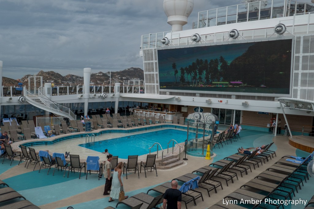 Our detour back to Cabo meant we were now behind schedule for our early morning arrival time in LA on 2/11/24. Our captain made up time overnight and our next day at sea by “putting the pedal to the metal” so to speak. We were still traveling under the legal limit but it was obvious we were moving faster. Along with the very rough seas for our last day, it made for a little bit more of a “bumpy” ride – not enough to really be bothered but noticeable. It brought everyone in from outside as the temperatures, occasional rain and wind were not conducive to lounging on the pool deck!