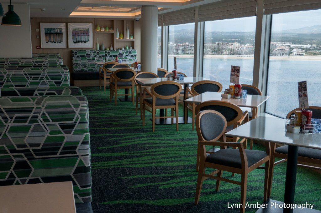 The Observation Deck food service was more continental in style with the only hot option being oatmeal in the morning. It was a large open area filled with comfortable seating and was a popular spot! It was so much nicer to enjoy this space when everyone else was off the ship on an excursion! Window seats were coveted!!