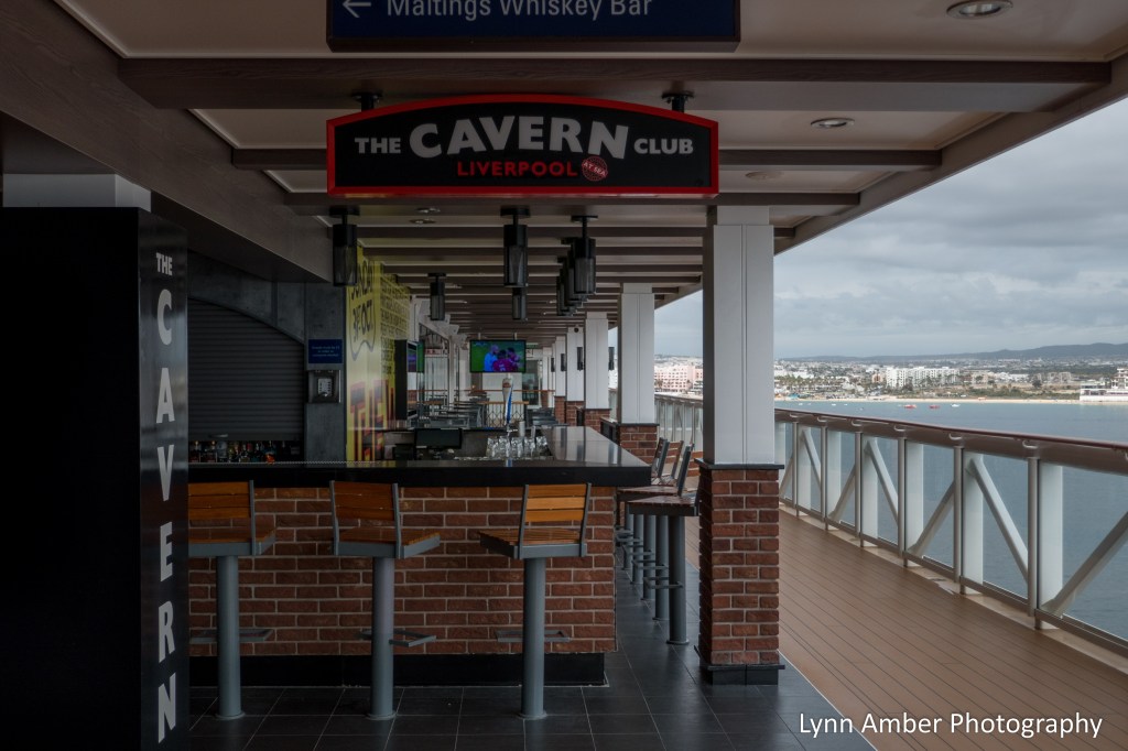 On our Deck 8, the back part of the ship had what is called The Waterfront and it had an outside promenade that went in a u-shape from mid-ship to mid-ship around the aft. It was fun to stroll along here and look out at sea or stop and just sit and relax in one of the many seating areas near the outside bars.