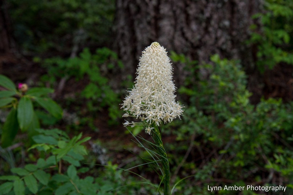 Bear grass is a plant that I am not at all familiar with and discovered growing en mass on the forest floor in the Mt. Hood National Forest. It gets its name due to the fact that bears like to munch on the tender, young flower stems. It has also been observed that grizzly bears will use the grassy parts in their dens!