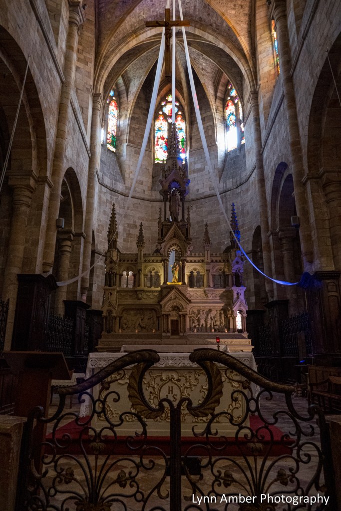 After our snack, we wandered around the village and peeked inside the Église Abbatiale Saint Sauveur à Figeac. In 843, an abbey was founded on the site of the current church by Benedictine monks. The church itself dates to the 12th century. It served as a major pilgrimage sanctuary during the Middle Ages until the Wars of Religion caused the town to be taken over by the Protestants. This is when parts of the church and abbey were destroyed. In later years, the church was rebuilt to its current structure.