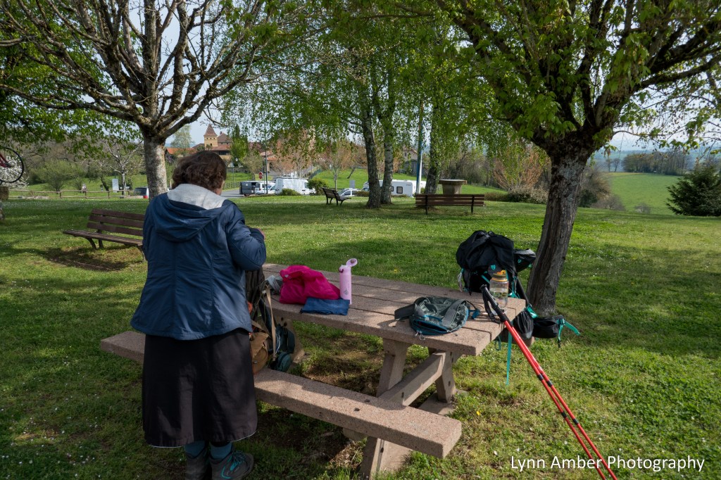 Saint-Jean-Mirabel was a short 1.8km from Saint-Félix and a walk through a landscape of rolling hills. The GR65 brought us into one section of the town near the Salle Communale and the office of the Mairie. It looked like there was an event going on in the Community Hall but we stopped there and used the restrooms and had our picnic lunch on the grounds.