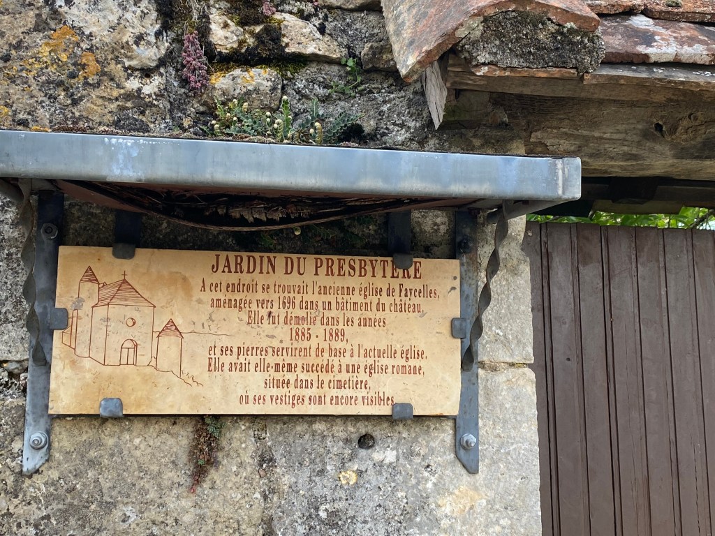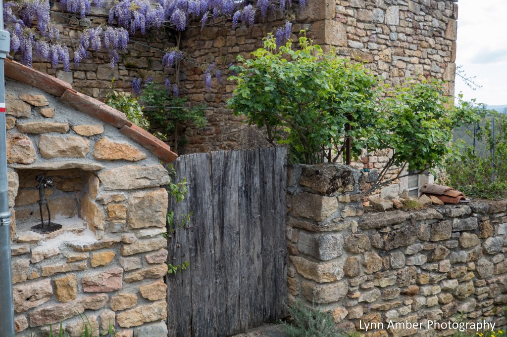 As I was admiring the tower, I noticed a walled garden to my left. The sign on the wall said that it was the site of the original ancient church in Faycelles built in 1696 and later demolished in the late 1800’s. The stones of the old church were used in the foundation of the existing village church. The gate into the garden was locked. Too bad I could not see what was on the other side!
