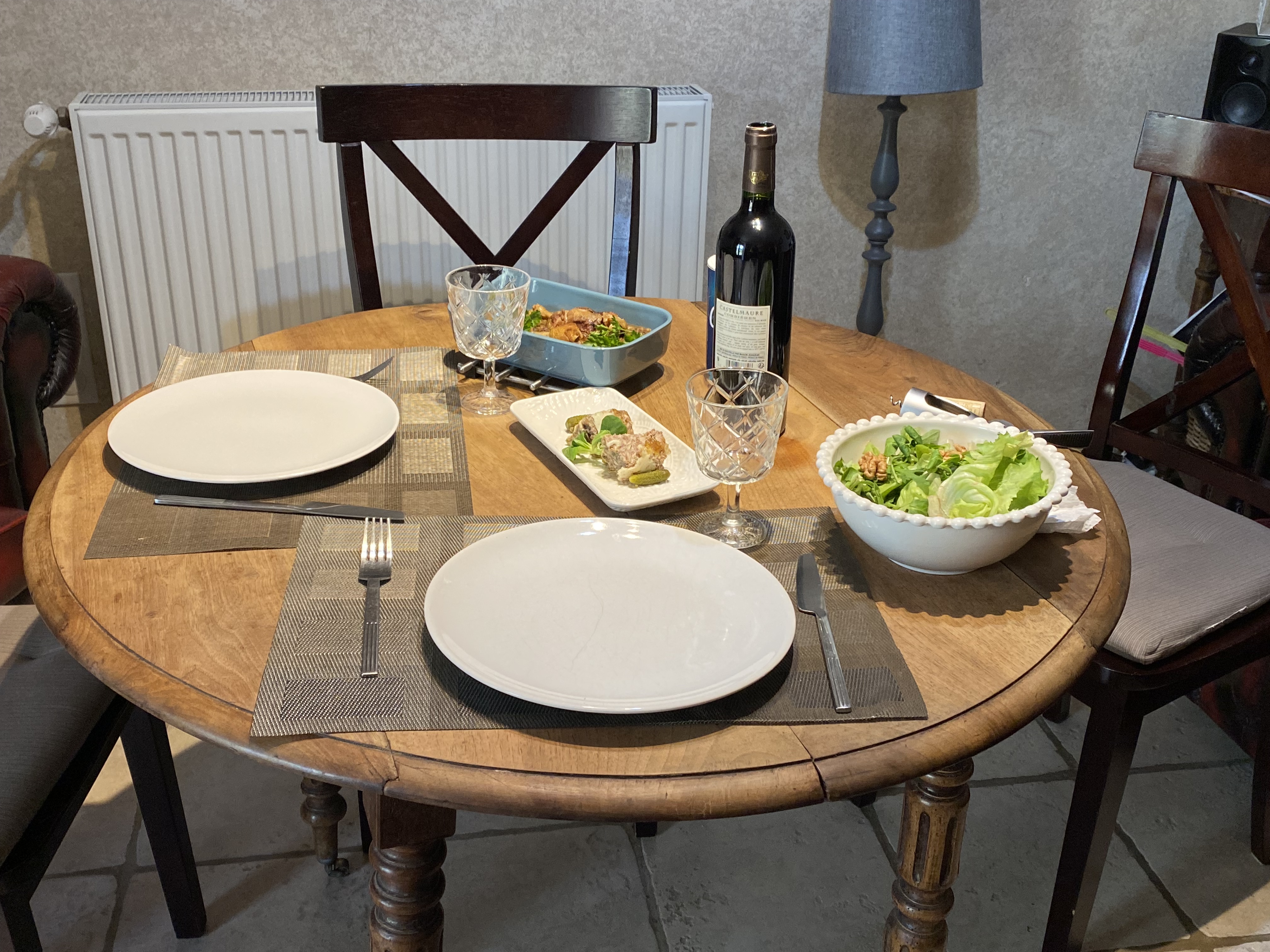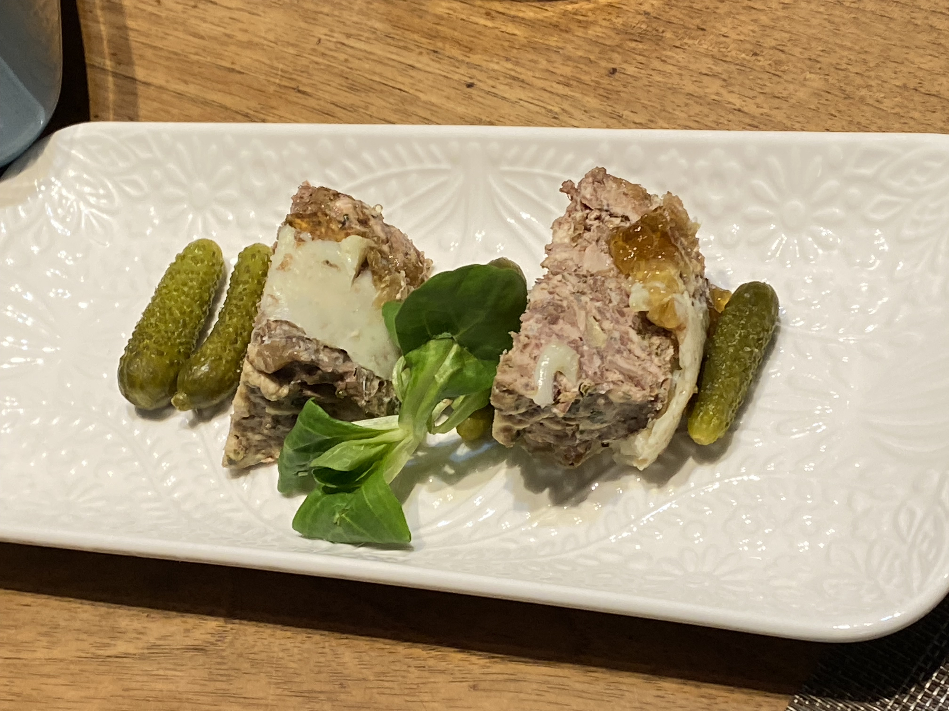 After wandering around, we headed back to our lodging in anticipation of a good meal! Our host brought our dinner over to us. She had prepared it in her home and it was delicious! It was a chicken dish, a pâté