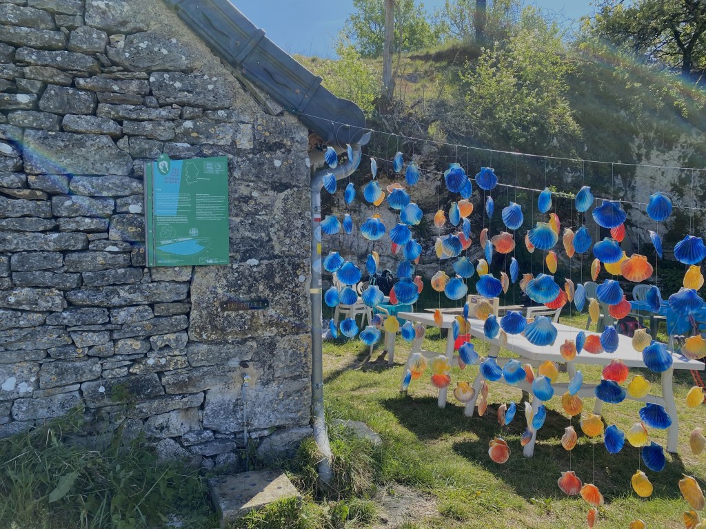 Just on the outskirts of Saint-Jean-de-Laur, there was the most amazing pilgrim rest stop!! During the high season, it also has a snack bar. There were a few local folks at the rest area cleaning up and getting ready for its official seasonal opening. I was invited to take off my pack and rest a spell. The volunteers who were cleaning up were so very friendly!