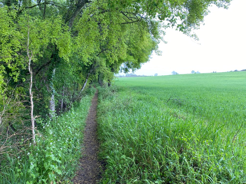Today’s walk was very rural, quite soggy and long – 22 kilometers. It was a very pretty day, though, through agricultural lands that were bright green with the spring rains.