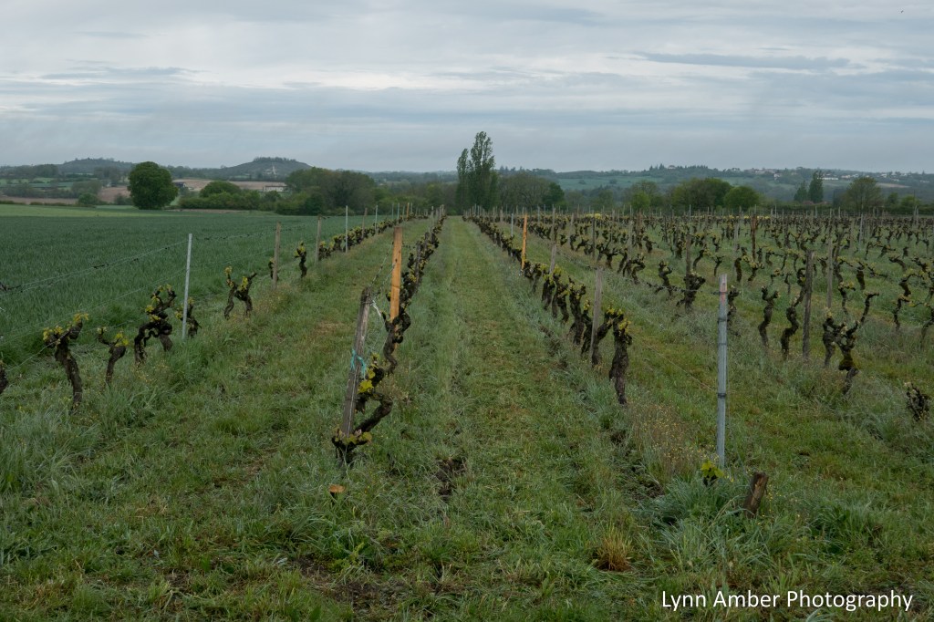 Much of the day the sky was cloud-covered and I rarely shed my rain gear! Along this section, I started to see more open fields of vineyards.