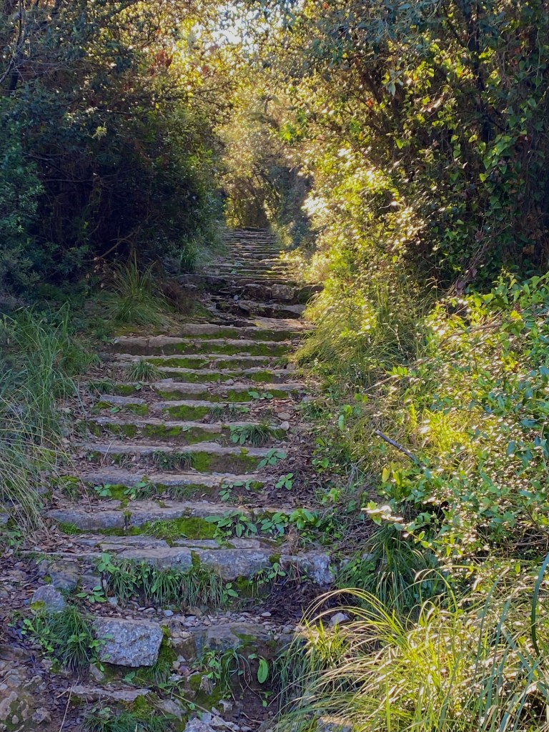 Once we left the pavement, we started up the steepest part of the hike today through overgrown mediterranean scrub.