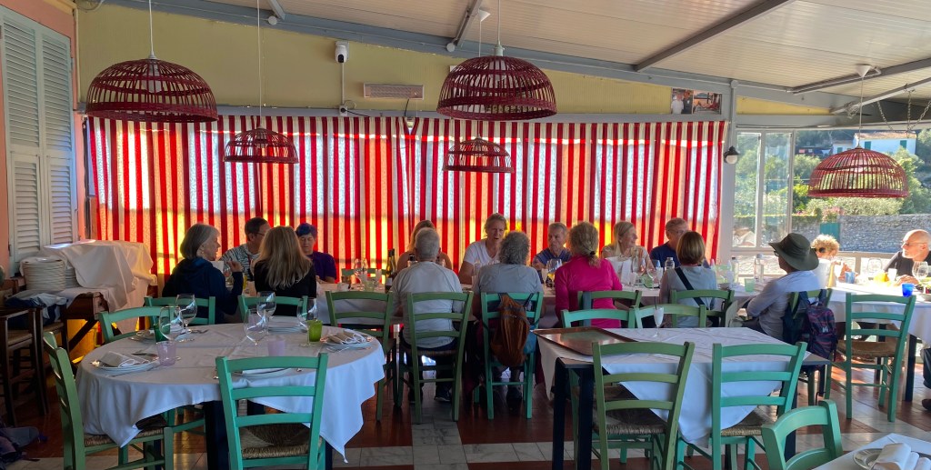 We had some magnificent views of Tino Island and the water on our descent through the Mediterranean scrub landscape on the eastern side of the island – typical plants include holly oak, downy oak, strawberry tree, rock rose and spanish broom.