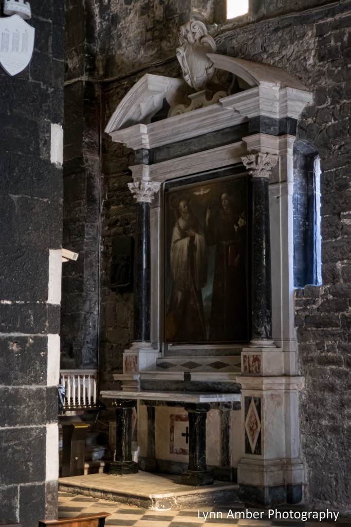 After walking through narrow streets, our next stop was at the Church of San Lorenzo. Built in 1130, this church displays the same Genoese Gothic style architecture of many ancient churches in the area. Inside the church is a parchment framed in white marble of the Madonna and Child dating to the 1200’s that is called the Madonna Bianca. The town of Porto Venere celebrates her with an annual festival on August 17th each year.