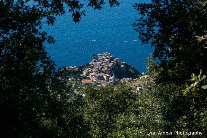 Since Boris has guided these hiking tours for many years, he knows just the right spot for a great photo opportunity! He gives us a warning and schedules our breaks at these points. Clever! Below is one such location – a view down to Corniglia framed by trees in the foreground.