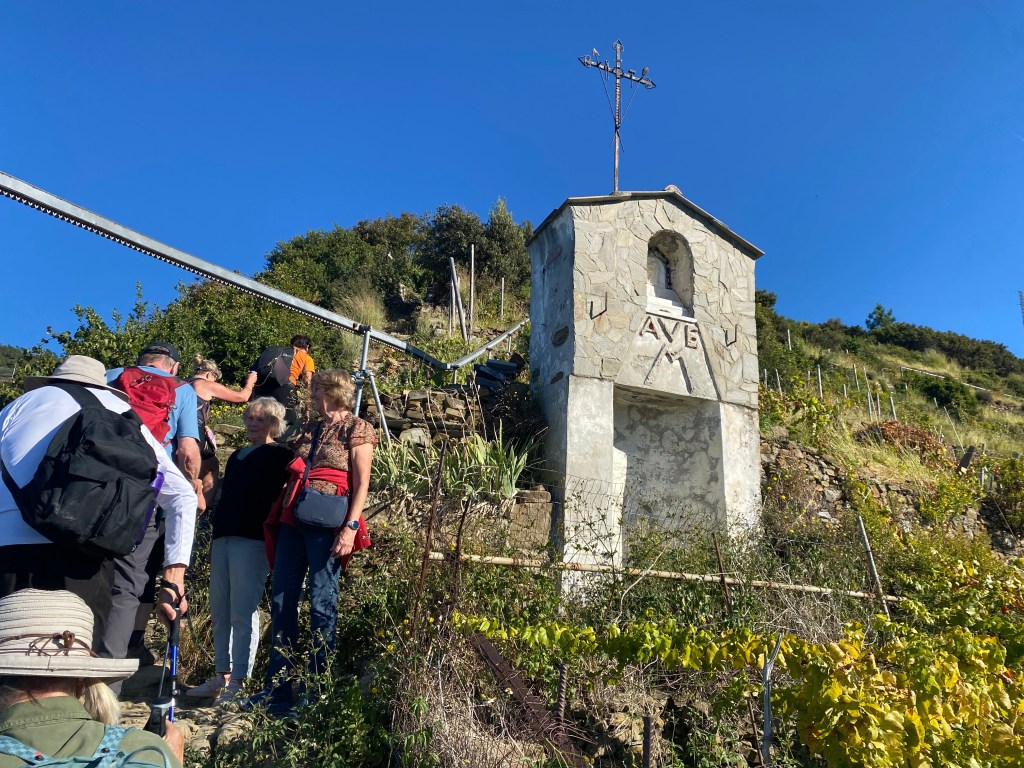 We reached the point where the trail to Volastra veered off the vineyard trail and the step climbing began! Some of our hiking group took the option to bypass this section of the trail due to the steepness and tall risers of the stone steps. They would meet up with us in Volastra – at the top of the climb.