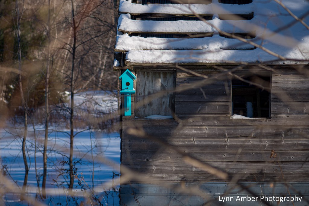 I pass by this old, abandoned sugar house on my daily walks. The current owner of the property has placed some colorful birdhouses on the building – adding a touch of color to an otherwise monochromatic landscape.