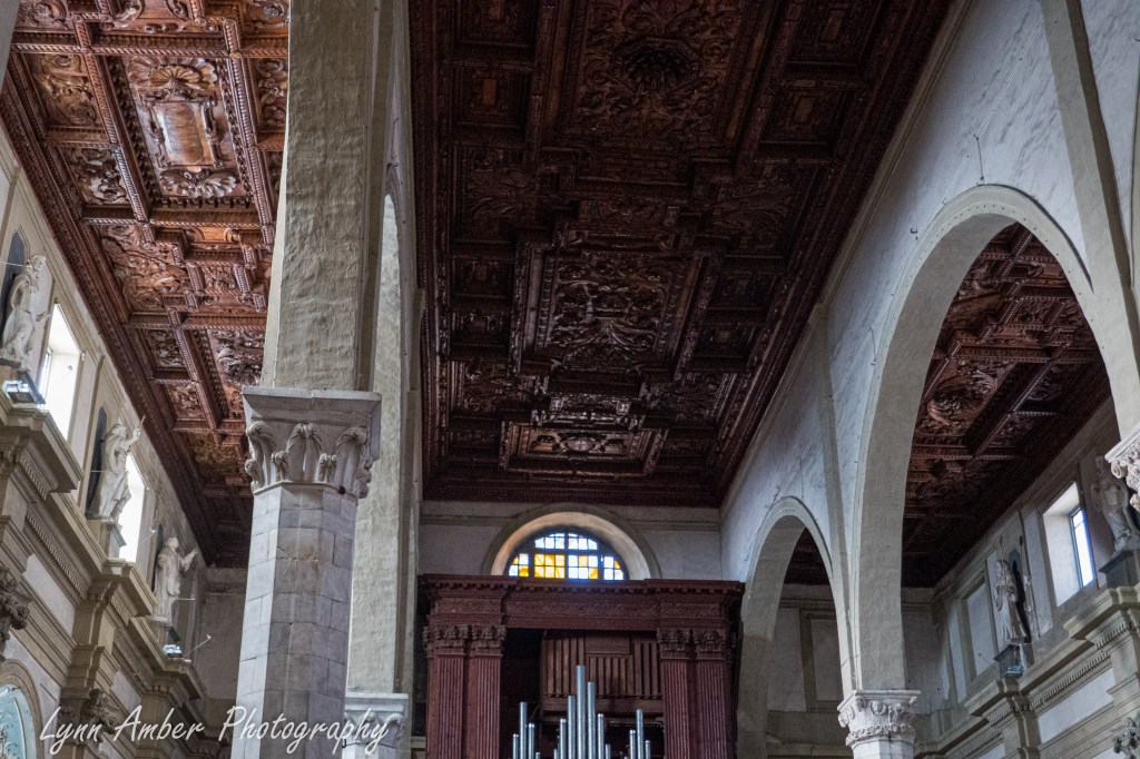The intricate wood ceiling was carved in the 1600’s by the artist Pietro Giambelli.