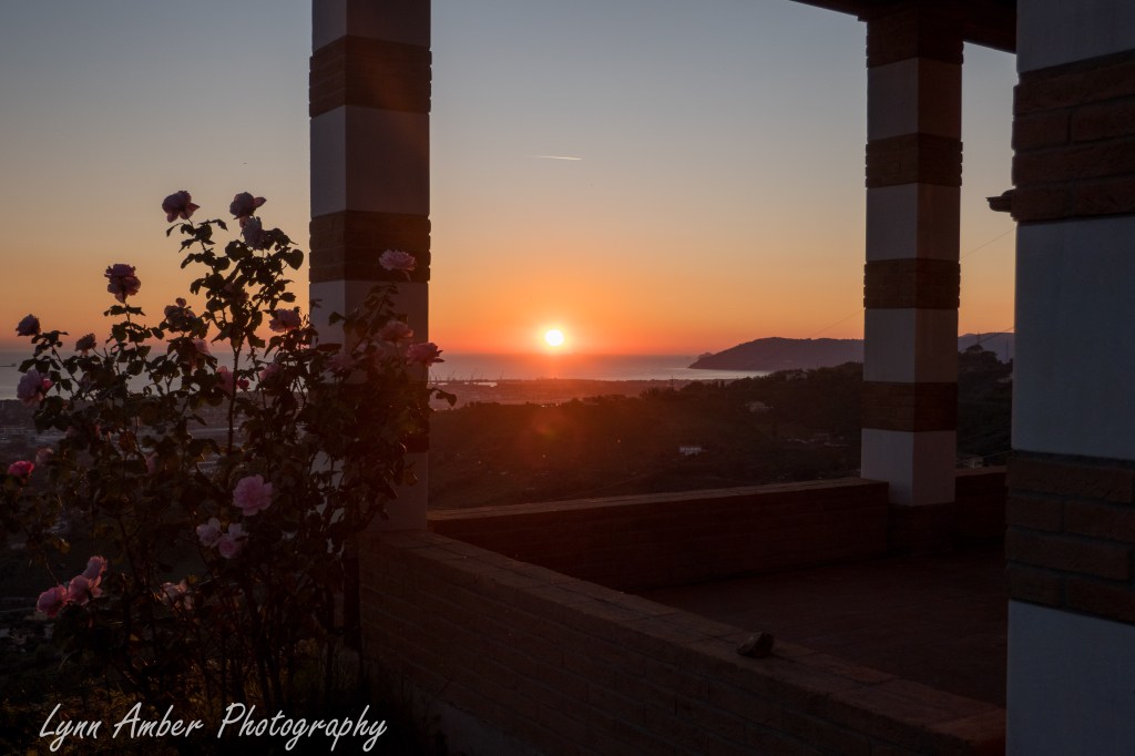 As we came around to the upper floor where the restaurant and wine-tasting is conducted, the sun was just about to set over the Ligurain Sea. I suspect our host timed this perfectly!