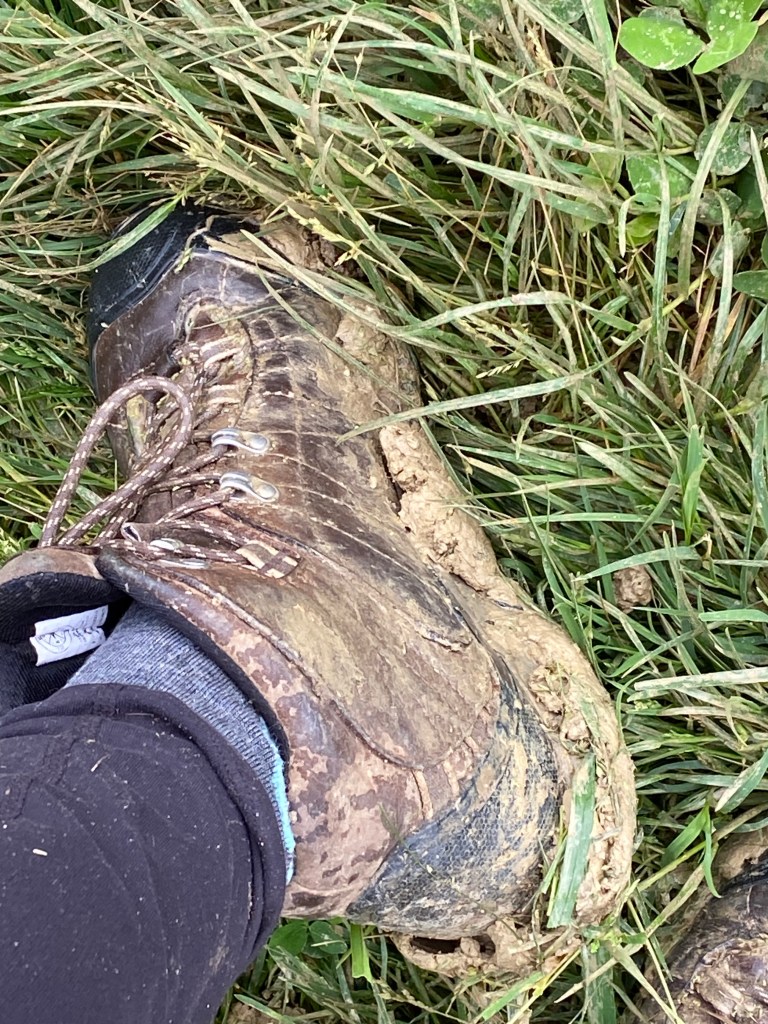 It was another misty, cloudy day and with all the rain that had fallen the previous day I was soon to discover a trail ladden with significant mud. This mud is like nothing I’ve ever experienced. It must have a high clay content because it is very sticky. Much of the day was spent stopping to scrap built up mud from my boots!!