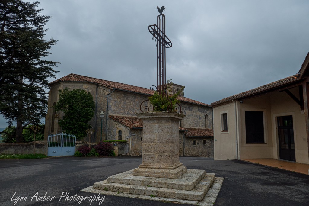 I did not take any photographs after leaving Lectoure until I reached the village of Marsolan. In the middle of the traffic circle in town, there was an iron cross. I loved the chicken that sat upon the top of the cross!