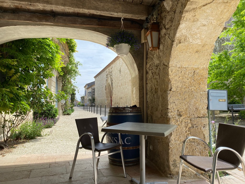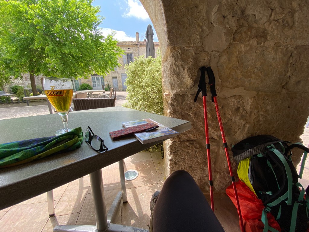 I settled at an outside table and enjoyed the blue sky that finally appeared!! The establishment where I grabbed my refreshment is L’Etape d’Angeline. It is a cafe, bar and restaurant that also has pilgrim accommodations. I had hoped to stay here but they were full when I was booking my reservations a few days in advance.