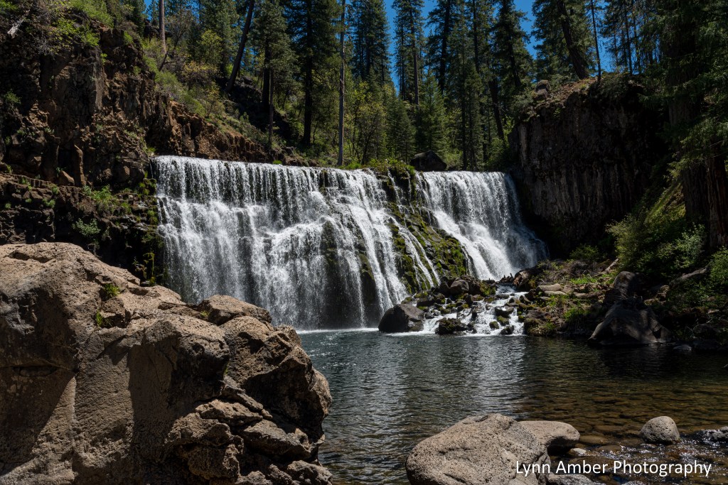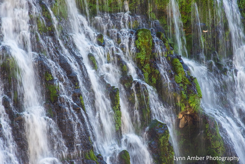 Burney Falls is over 120’ high and 250’ wide and more than 100 million gallons of water flow over the cliff in a day! The falls are unique in that the water emerges not just from the top where the creek overflows but through numerous cracks and springs in the face of the cliff. Hanging gardens of ferns and other plants provide a backdrop to the tumbling water creating a stunning display. Designated a National Natural Landmark in 1954, it is truly one of the most spectacular places in Northern California.