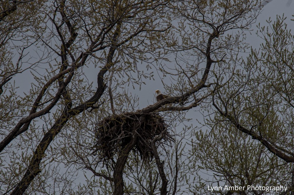 The above photo was taken back in May before the leaves came out making the nest and the eagle very visible! Later in the month, we took my Canon camera with the 200mm lens back out and captured some of the photos below. Jim snapped the photos while I did the editing – just need to give credit where credit is due!! Good job Jim!